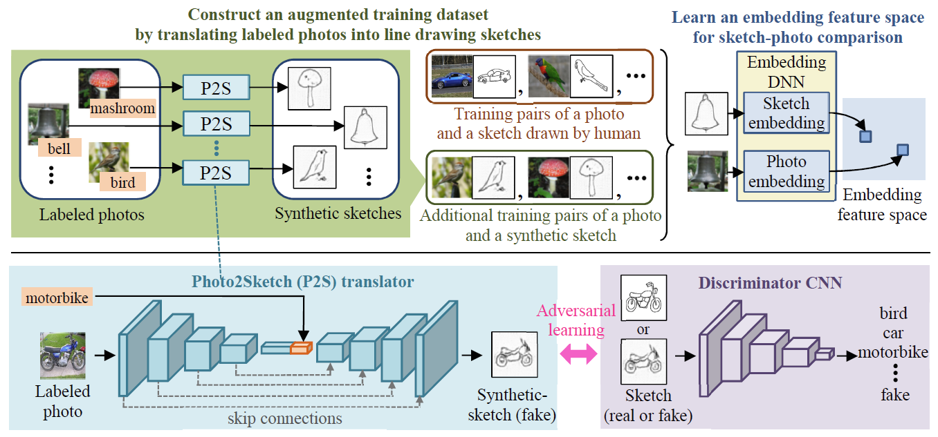 Takahiko Furuya, Ryutarou Ohbuchi, Data augmentation via photo-to-sketch translation for sketch-based image retrieval, Proceedings Volume 11069, Tenth International Conference on Graphics and Image Processing (ICGIP 2018); 1106925 (May, 2019), https://doi.org/10.1117/12.