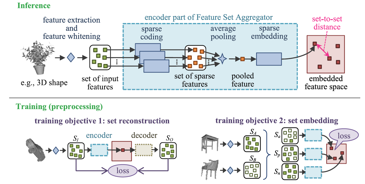 Takahiko Furuya, Ryutarou Ohbuchi, Feature set aggregator: unsupervised representation learning of sets for their comparison, Multimedia Tools and Applications, 78, 35157–35178 (2019), DOI: 10.1007/s11042-019-08078-y (PDF)