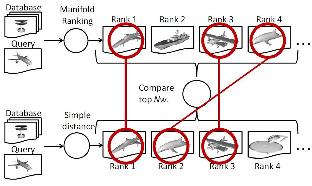Ryutarou Ohbuchi, Toshiya Shimizu, Ranking on Semantic Manifold for Semantic 3D Model Retrieval, an oral paper, ACM MIR 2008, Vancouver, Canada, Oct. 2008. (PDF) (Acceptance ratio, including poster papers, is 21%)