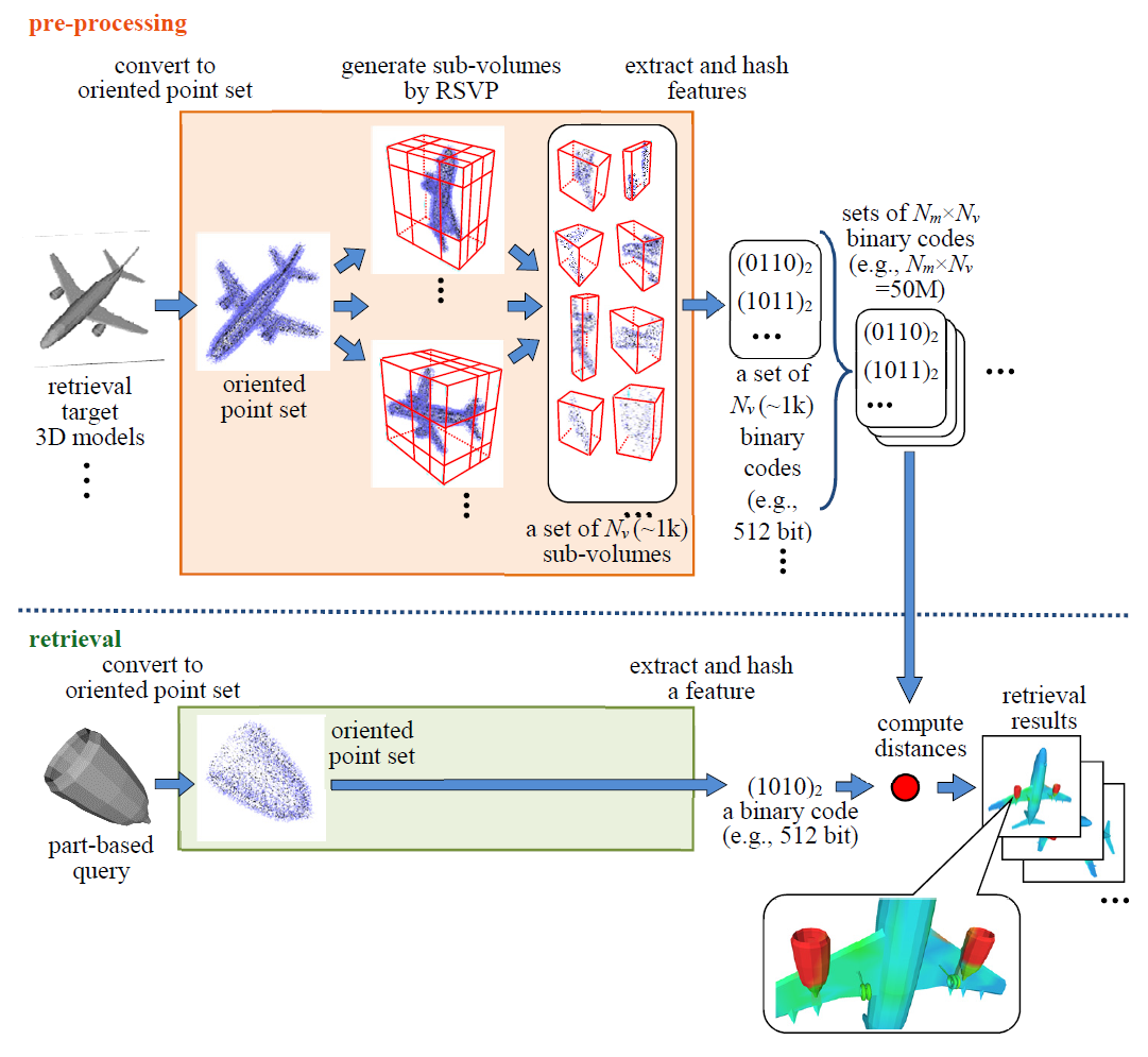 Takahiko Furuya, Seiya Kurabe, and Ryutarou Ohbuchi, Randomized Sub-Volume Partitioning for Part-Based 3D Model Retrieval, pp.15-21, oral paper, Proc. Eurographics Workshop on 3D Object Retrieval (EG 3DOR) 2015, Zurich, Switzerland, May 2-3, 2015, DOI:10.2312/3dor.20151050 (PDF).