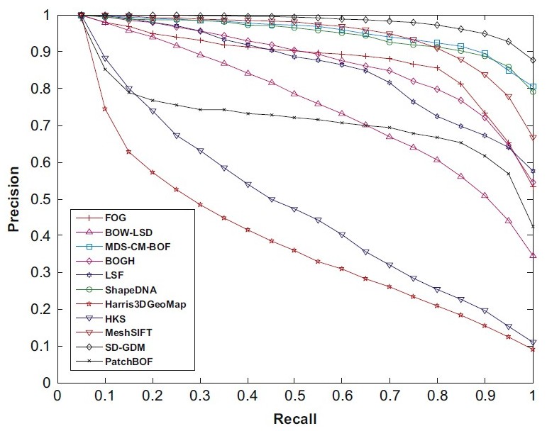 Performance of this 3D model retrieval method was measured using SHREC 2006, and is listed here.