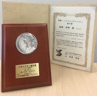 受賞した上西さんは,「この度は私達の論文を特選論文に選定して頂き、大変嬉しく思います.大渕先生,古屋先生をはじめ,研究や論文執筆にあたってご指導・ご協力頂いた方々に,心より感謝申し上げます.」とコメントしています.